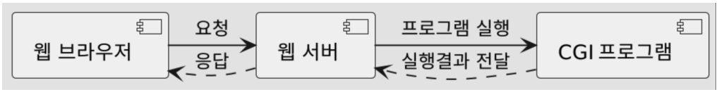 - 웹 서버(Apache 등)는 이 요청을 CGI 프로그램에 전달하고,