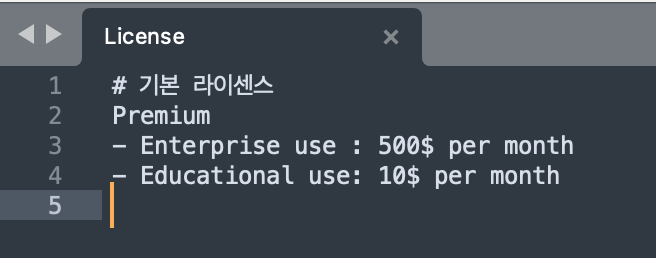 - 리모트 레포지토리 > premium 브랜치 > License