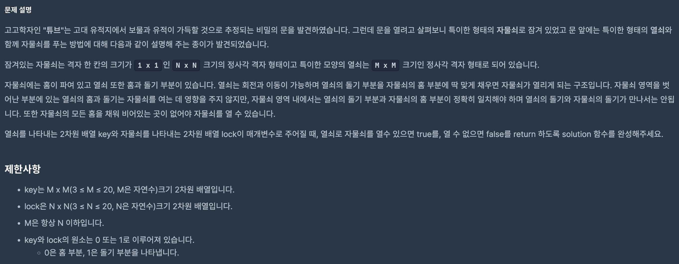 (조건에서 key의 크기는 M, lock의 크기는 N인데, M은 항상 N 이하라고 했으므로)