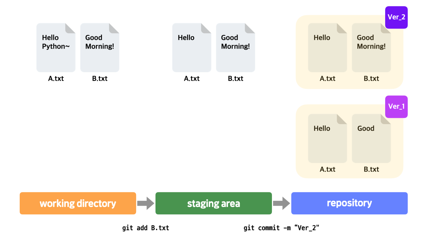 2. git add B.txt 만 실행해서 B.txt 만 staging area에 올림